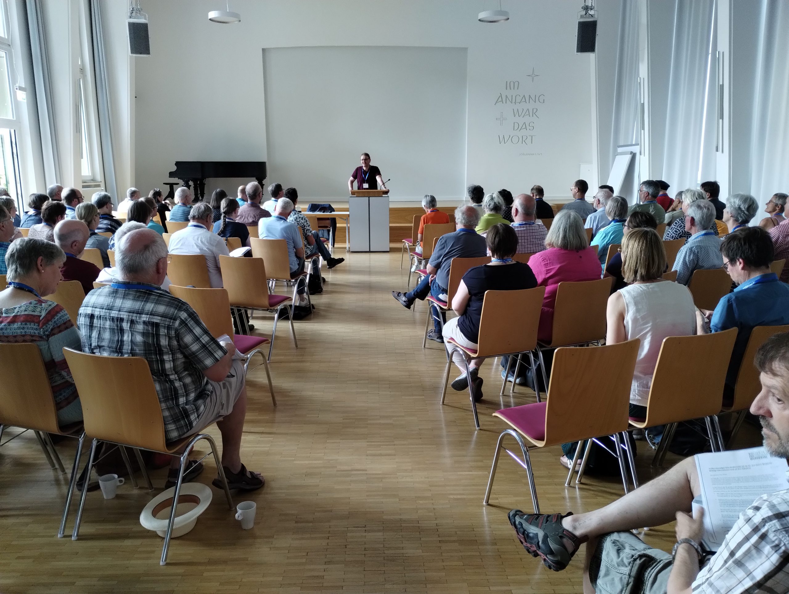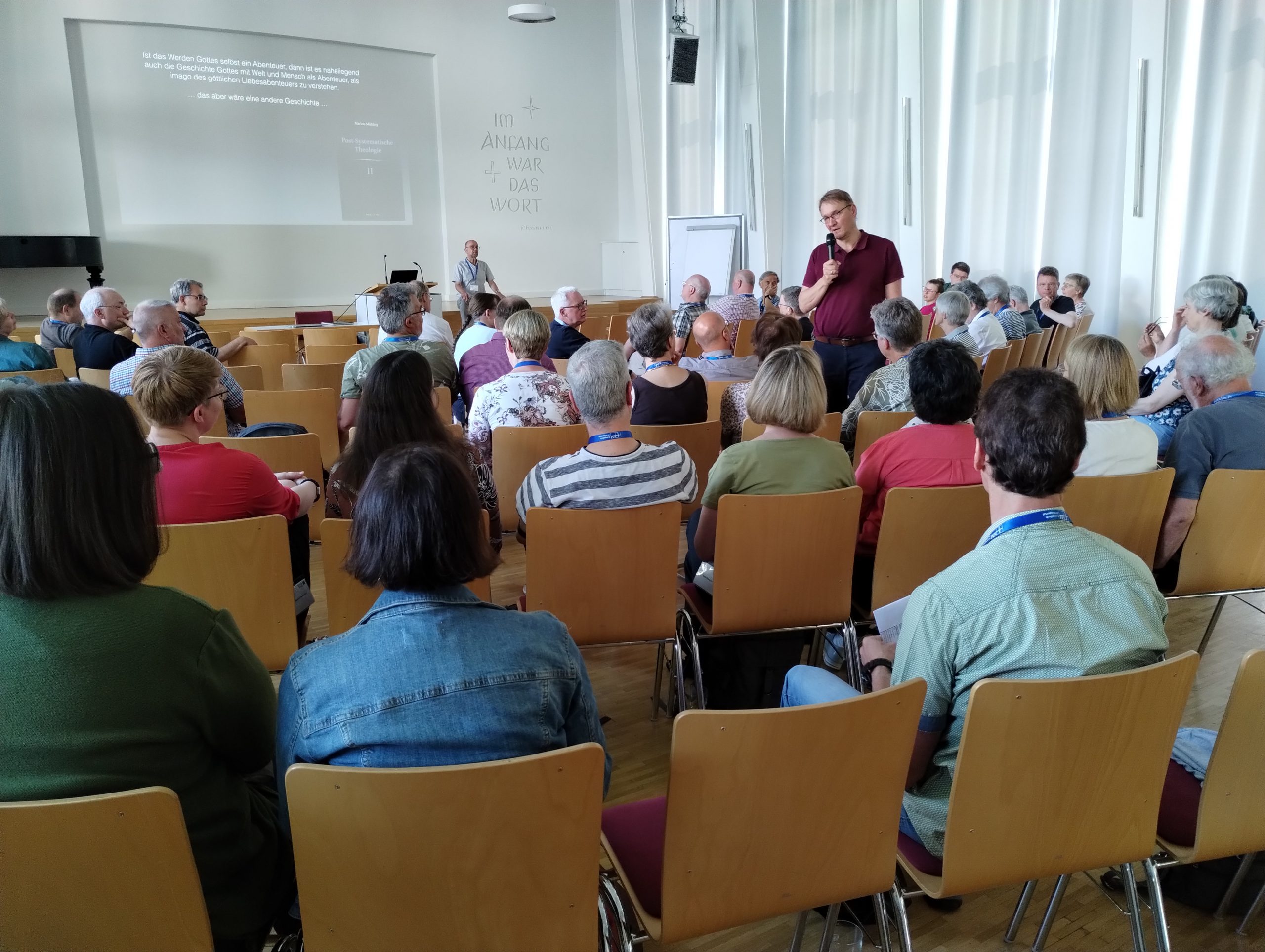 Das Programm begann am Freitag um 15.30 Uhr mit der Begrüßung durch Prof. Dr. Markus Mühling, den Rektor der Kirchlichen Hochschule Wuppertal, und durch Prof.em. Dr. Hellmut Zschoch, den Vorsitzenden des Fördervereins im Audimax. Anschließend verteilten sich die Teilnehmenden in die Hörsäle, um sich in gemeinsamen Gesprächsrunden begegnen und zu erinnern – an ihre KiHo Erfahrungen und ihre KiHo-Prägungen.